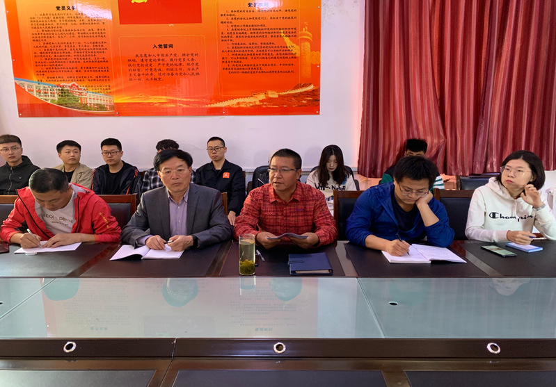 党委书记兰民、党委副书记吴文东、党委专职组织员邹绍岩、学生第二党支部书记万杨、学生第一、第二党支部和研究生党支部等全体党员参加会议。