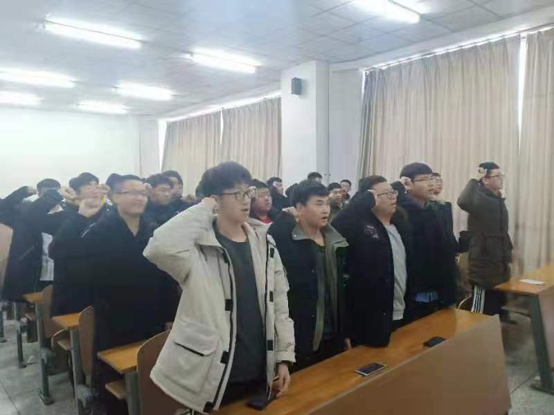 活动最后一项,180202团支部书记陈洋带领全体团员重温入团誓词,不忘初心,用誓词表达了为共青团组织不懈奋斗的坚定决心。