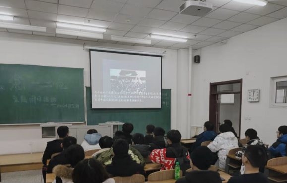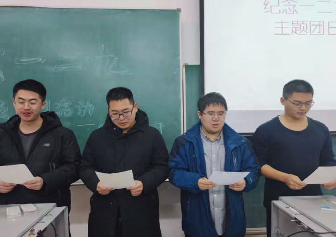 本次活动开始,首先是了解“一二·九”运动的历史。华北事变发生后,中华民族面临亡国灭种的危险,在这种严峻的形势下,1935年12月9日,北平学生率先走上街头游行示威,勇敢地肩负起了“抗日图存、挽中华民族于危亡”的历史使命。随后运动波及全国各大城市,形成了抗日救亡运动的新高潮。第二项由学生代表进行朗诵。青年,响亮的名字,斗争的号角,自由的先驱,以最昂扬的姿态,最磅礴的气势,最决绝的方式,引领着国家和民族的未来。第三项重温入团仪式,“我宣誓,我志愿加入共产主义青年团……”随着那铿锵有力的宣誓声,共青团员们重温了入团誓词,重新明确了自己的方向。中国的今天从奋斗中走来,中国的明天要在奋斗中开创。为了国民的安宁,先烈们以生命诠释着不变的誓言,激励着我们前进。爱国是我们每个人振兴中华的使命,爱国主义是动员和鼓舞炎黄子孙团结奋斗的旗帜。第四项是观看历史纪录片,同学们观看后表示应继承和发扬“一二·九”运动的优良传统,“一二·九”精神为前进的动力,努力承担振兴中华的历史使命,刻苦学习,顽强拼搏,用科学文化知识武装自己,发出新时代新青年的呐喊!第五项为会议总结,团支部书记对此次活动意义进行深一步总结,青年的我们应汲取先辈的精神“他们用自己的力量诠释着对时代使命的担当,但是他们也只是少年年纪与我们相仿,在时代的洪流中未选择独善其身,而是心系家国,忧天下兴亡。”没有任何力量能够撼动我伟大祖国的地位,没有任何力量能够阻挡中国人民和中华民族的前进步伐,其次号召同学们要继续为实现“两个一百年”奋斗目标、实现中华民族伟大复兴的中国梦而努力奋斗。作为新时代大学生我们应该奋发图强,用自己的青春热血为祖国贡献一份力量。