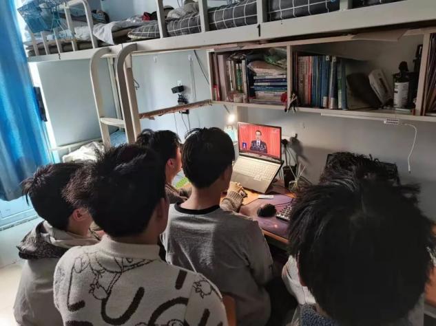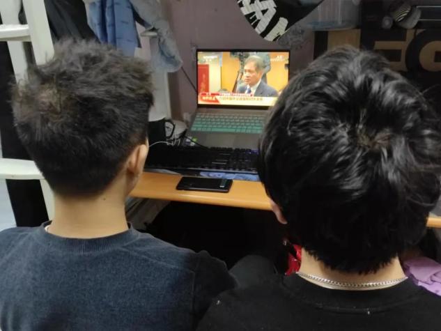 3月5日上午,同学们以团小组形式观看人大会议开幕会。3月8日,全体集体在线观看第二次全体会议。