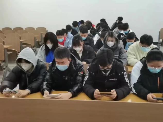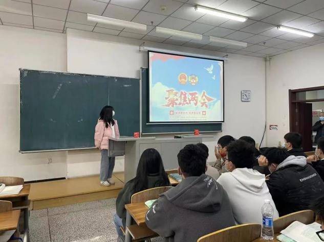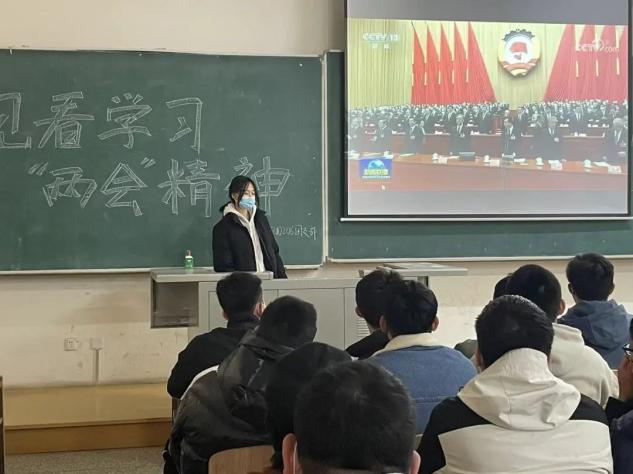 2022年3月7日,200202班团支部在教学主楼1509教室集体观看两会开幕式。为响应疫情防控要求观看全程佩戴口罩。