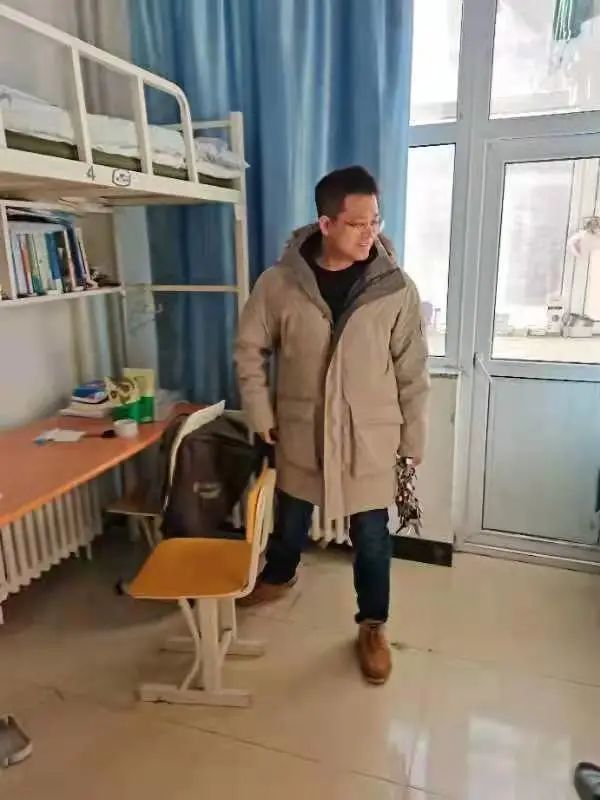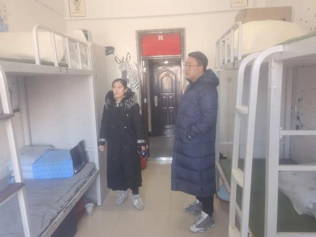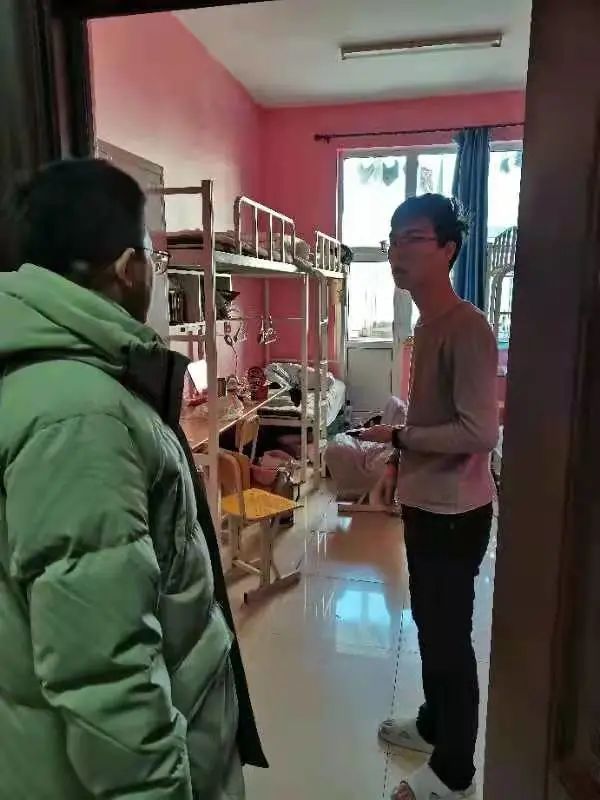 第二党支部书记、21级辅导员张晓君,来到各个寝室进行假期排查。