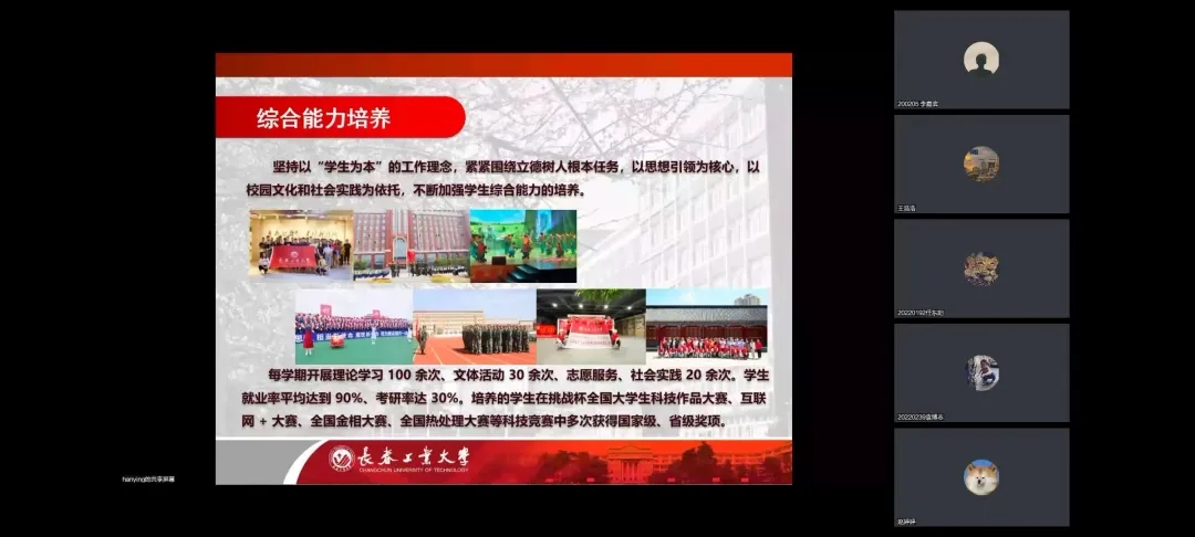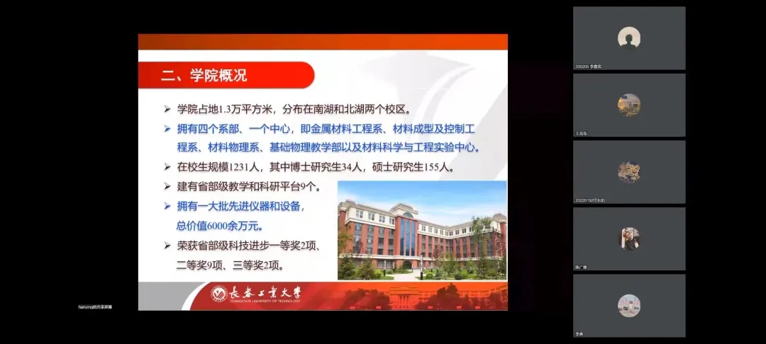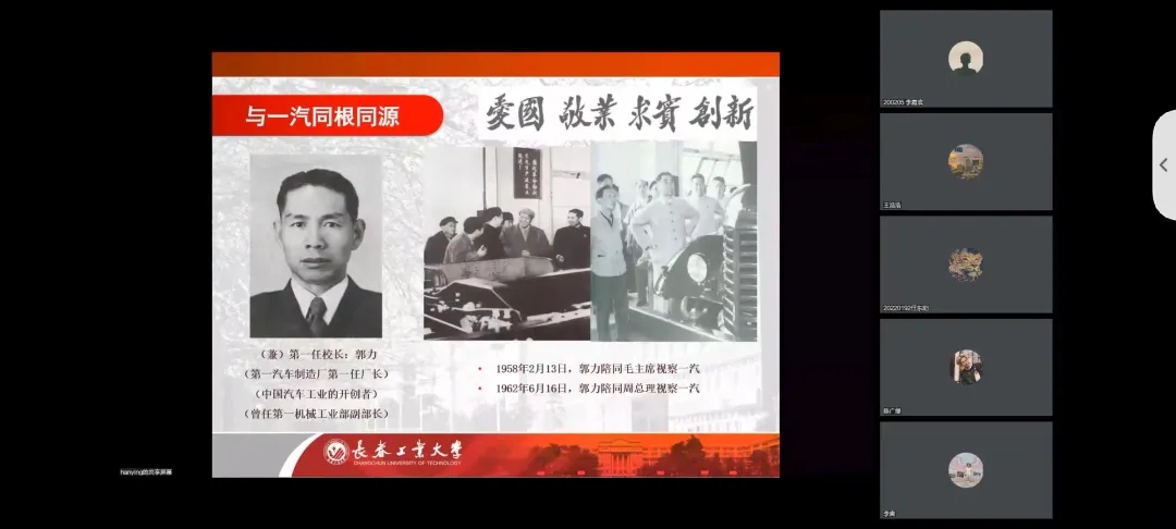 韩英院长介绍了长春工业大学的历史背景,校园面积,教师团队,全校教学科研仪器设备,让同学们了解了长春工业大学的历史背景,建立了身为工大人的骄傲与自豪感。