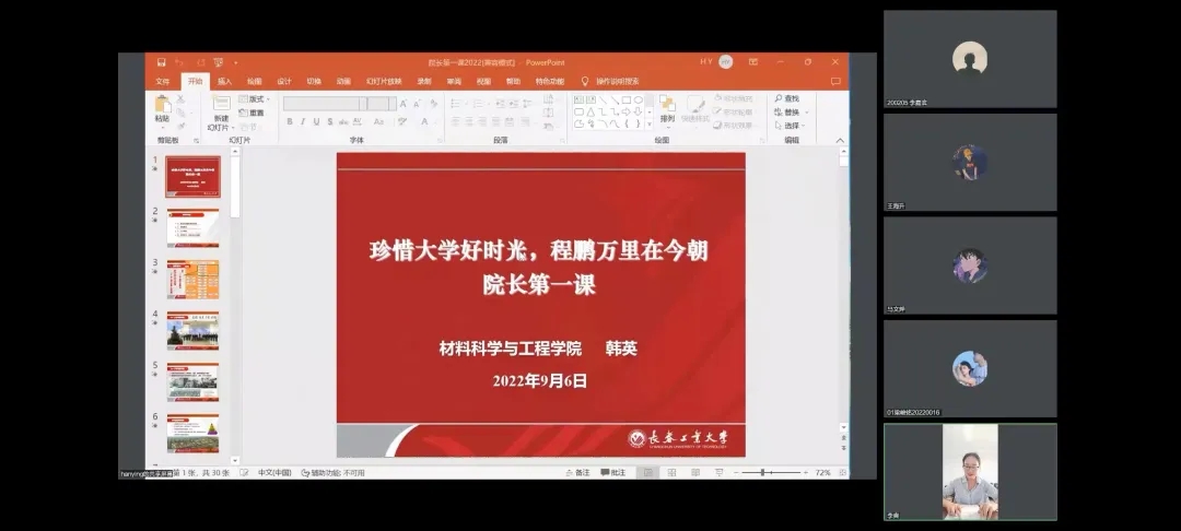 会议之初,2022级辅导员李爽老师向同学们介绍了韩英院长的科研经历和成果,拉近了老师和同学们距离。