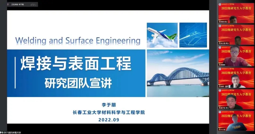 的发展历程、师资力量、科研条件以及研究生培养成果,对研究生新生们提出“四勤”要求:手要勤,勤做实验;眼要勤,勤读文献;脑要勤,勤于思考;脚要勤,勤参加学术交流活动。副院长王丽丽从培养计划、论文要求、毕业要求、奖惩规定等几方面详细的进行了介绍,同时希望同学们做科研要讲求科研诚信、科技素养。副书记刘永帆要求同学们端正态度、正确认识,积极投入到接下来的线上教学中,同时要求同学们增强责任意识、做好线下报到前的个人防护。导师代表李于朋介绍了所在团队的具体情况。