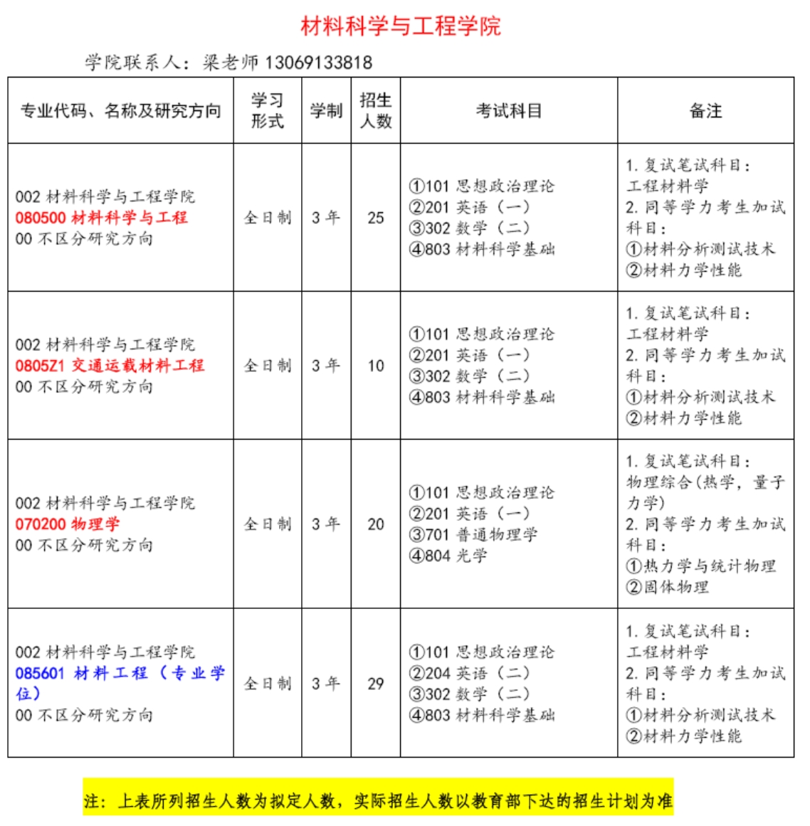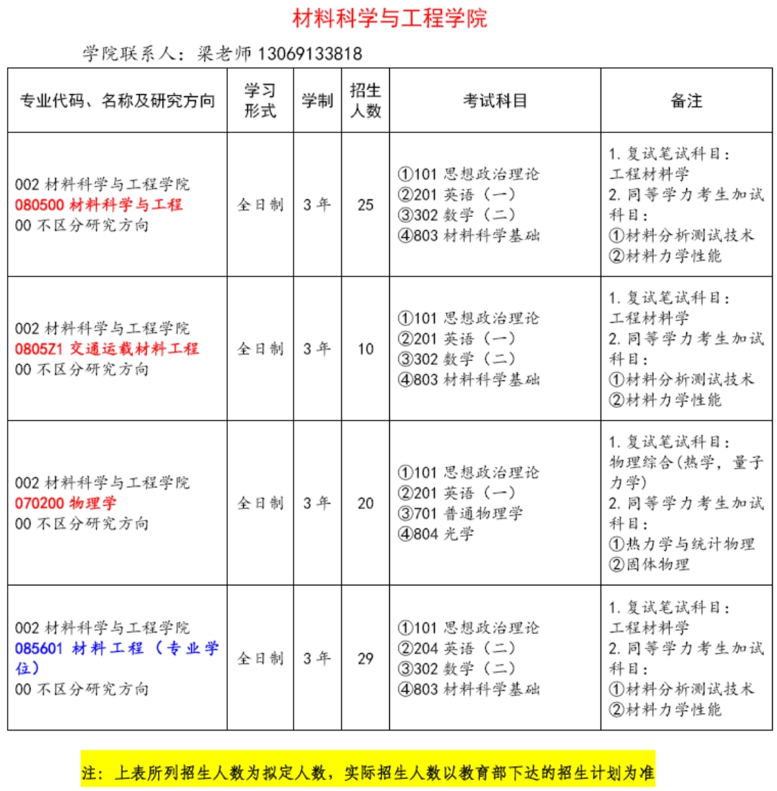 学术型工学硕士点:材料科学与工程、交通运载材料工程