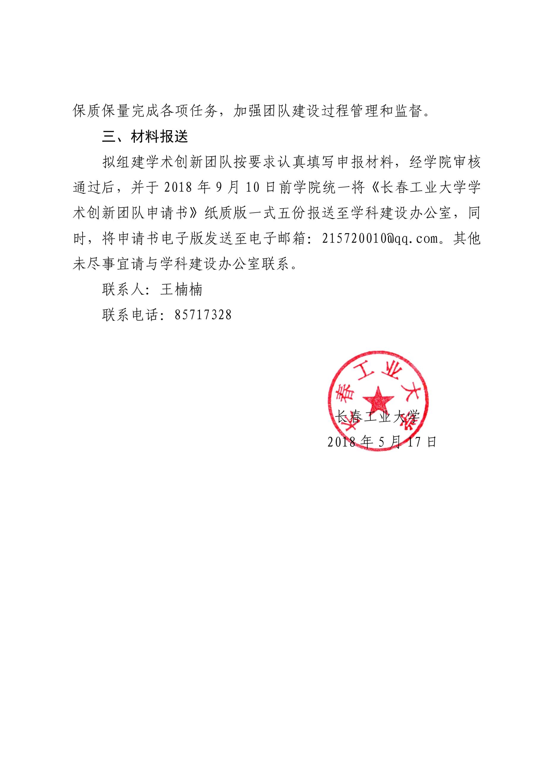 关于开展长春工业大学第一批学术创新团队组建与遴选工作的通知