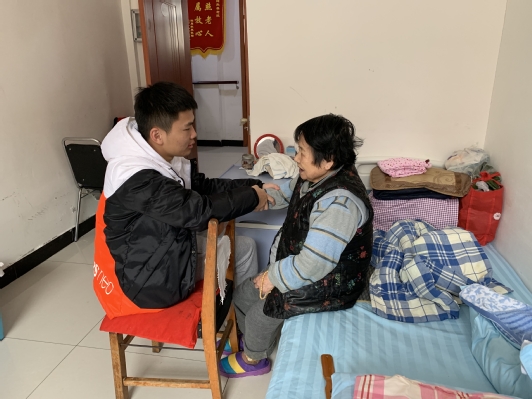 清晨九点,迎着朝霞,同学们怀着诚挚之心,带着慰问品来到敬老院,老人们热情欢迎同学们的到来,同学们的到来使原本安静的养老院充满了笑声,同学们和老人歌,陪老人们聊天。交谈的同时,认真倾听老人们讲述着自己的个人经历,令我们了解我们今天的幸福来之不易,同学们也把自已在外读书情况以及自己家乡情况给老人们一一讲述,一边跟老人谈心一边为老人捶背,听到老人们爽朗的笑声,同学们充分体会到了本次活动的意义。