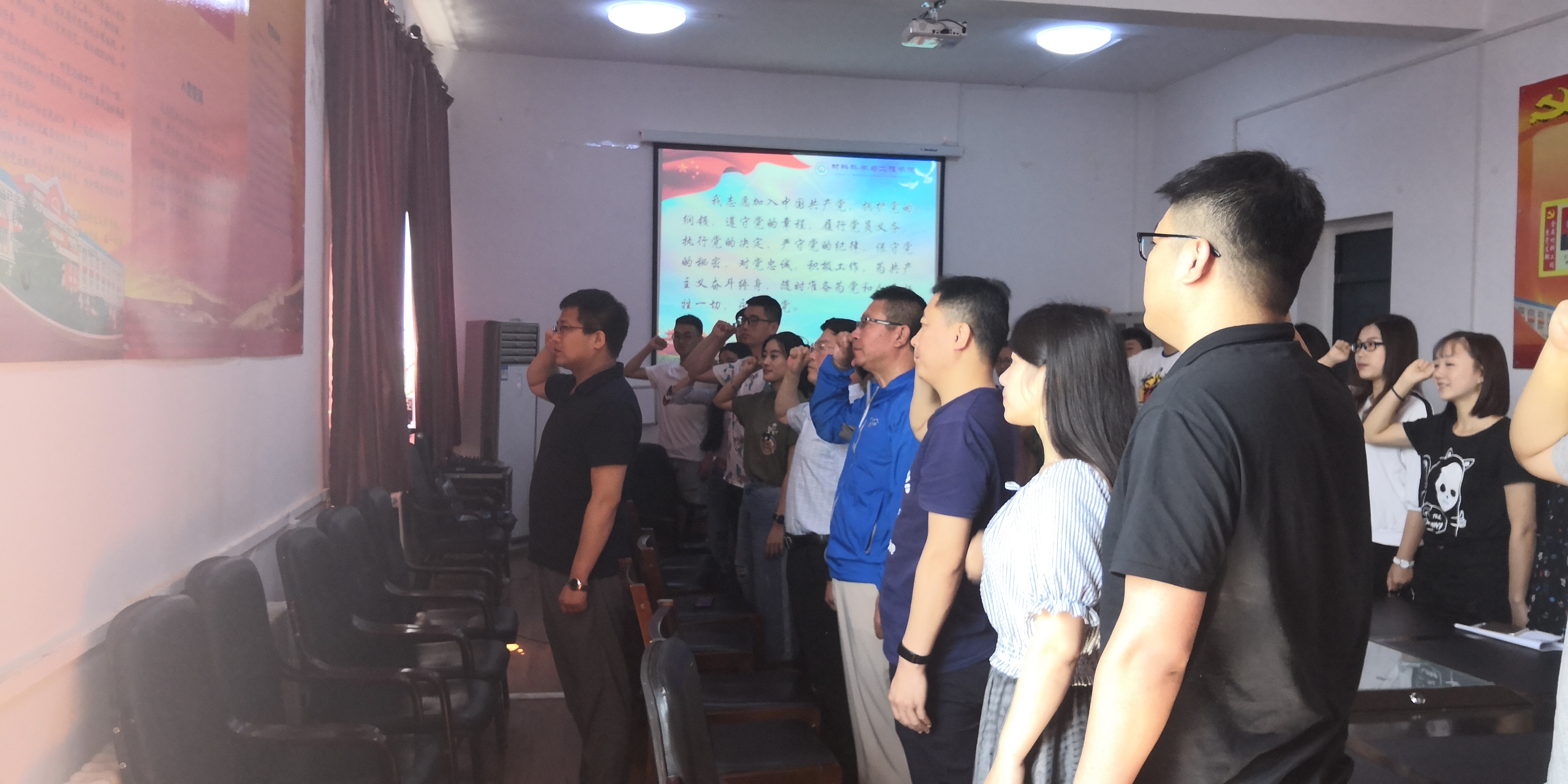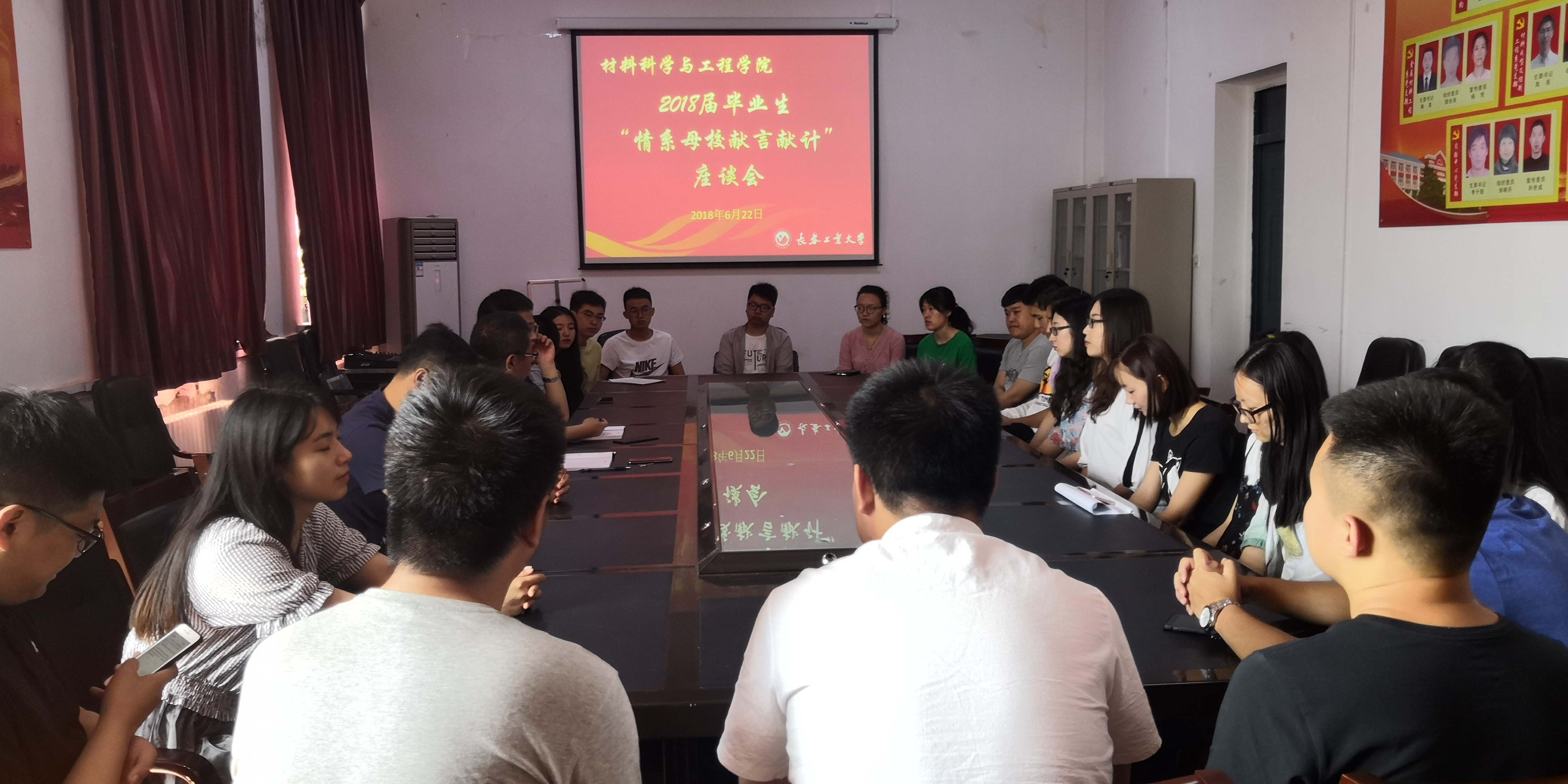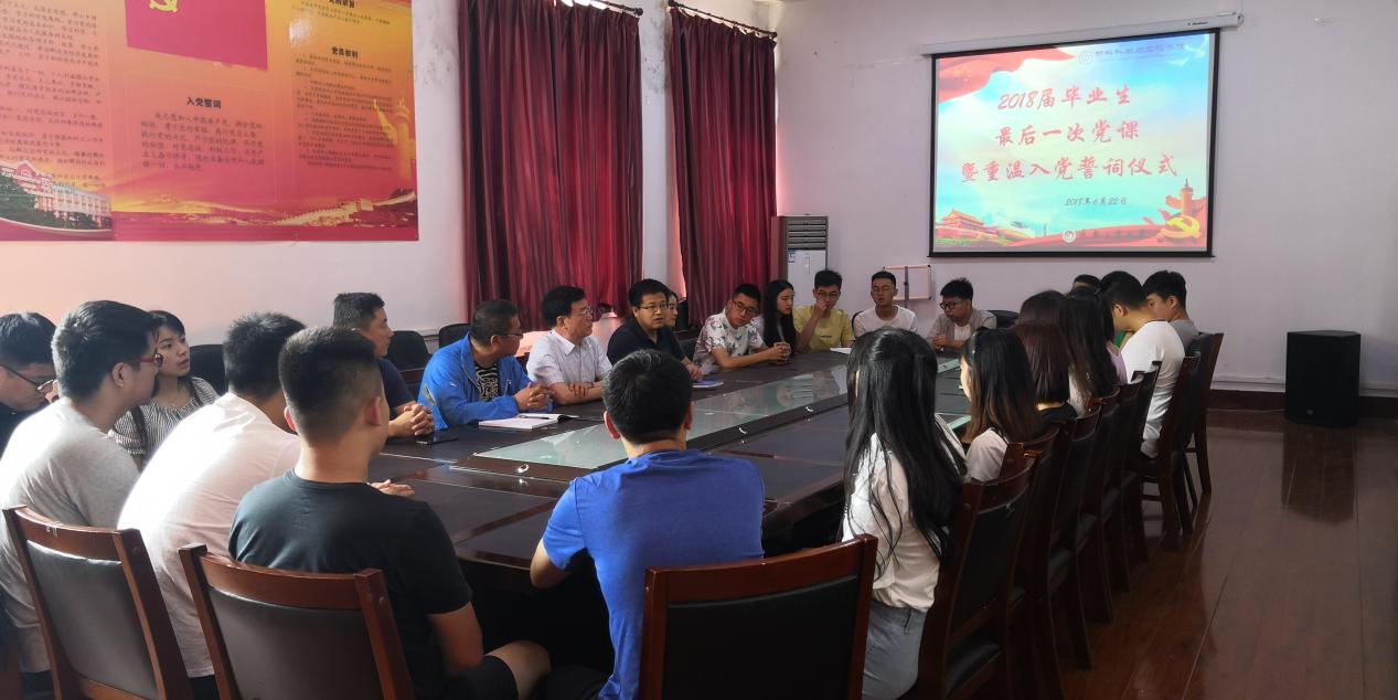 党委在材料楼五楼会议室举办2018届毕业生最后一次党课暨重温入党誓词仪式和“情系母校献言献计”座谈会。本次会议由党支部书记万杨主持。党委书记兰民,副书记吴文东,党委专职组织邹绍岩,全体2018届毕业生党员参加会议。