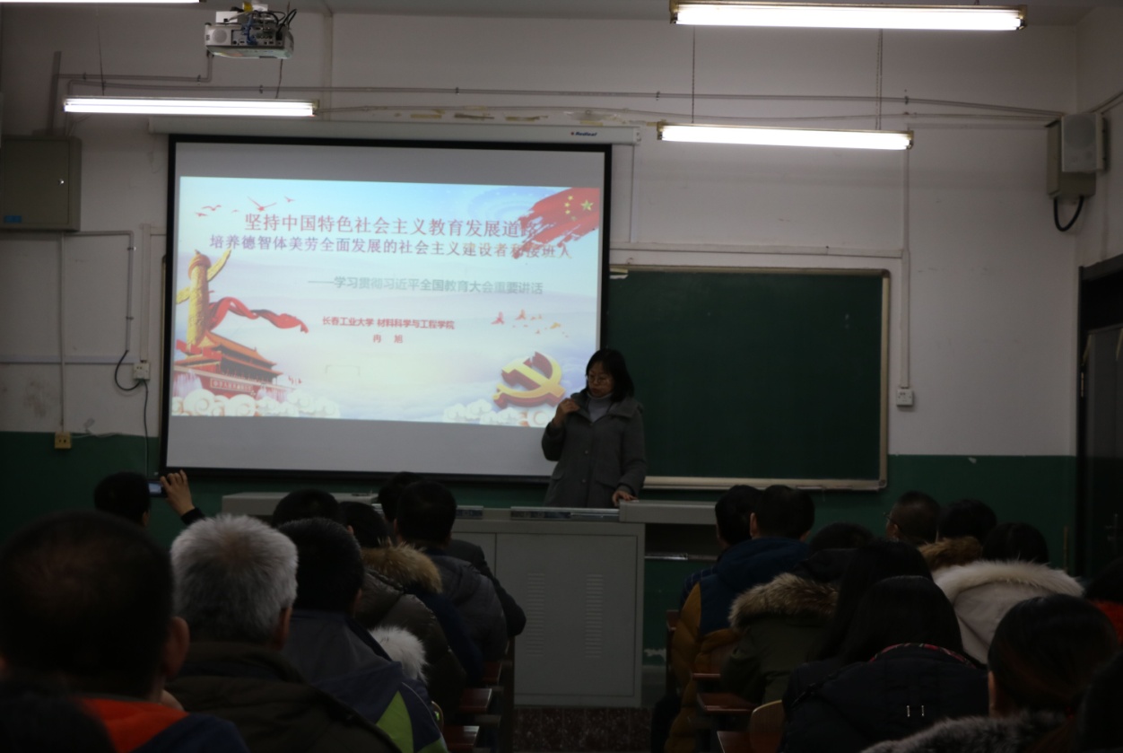 院长冉旭向参会人员汇报了学习习近平总书记在全国教育大会上的讲话的心得体会,以教育者独特的视角对报告内容进行了解读。