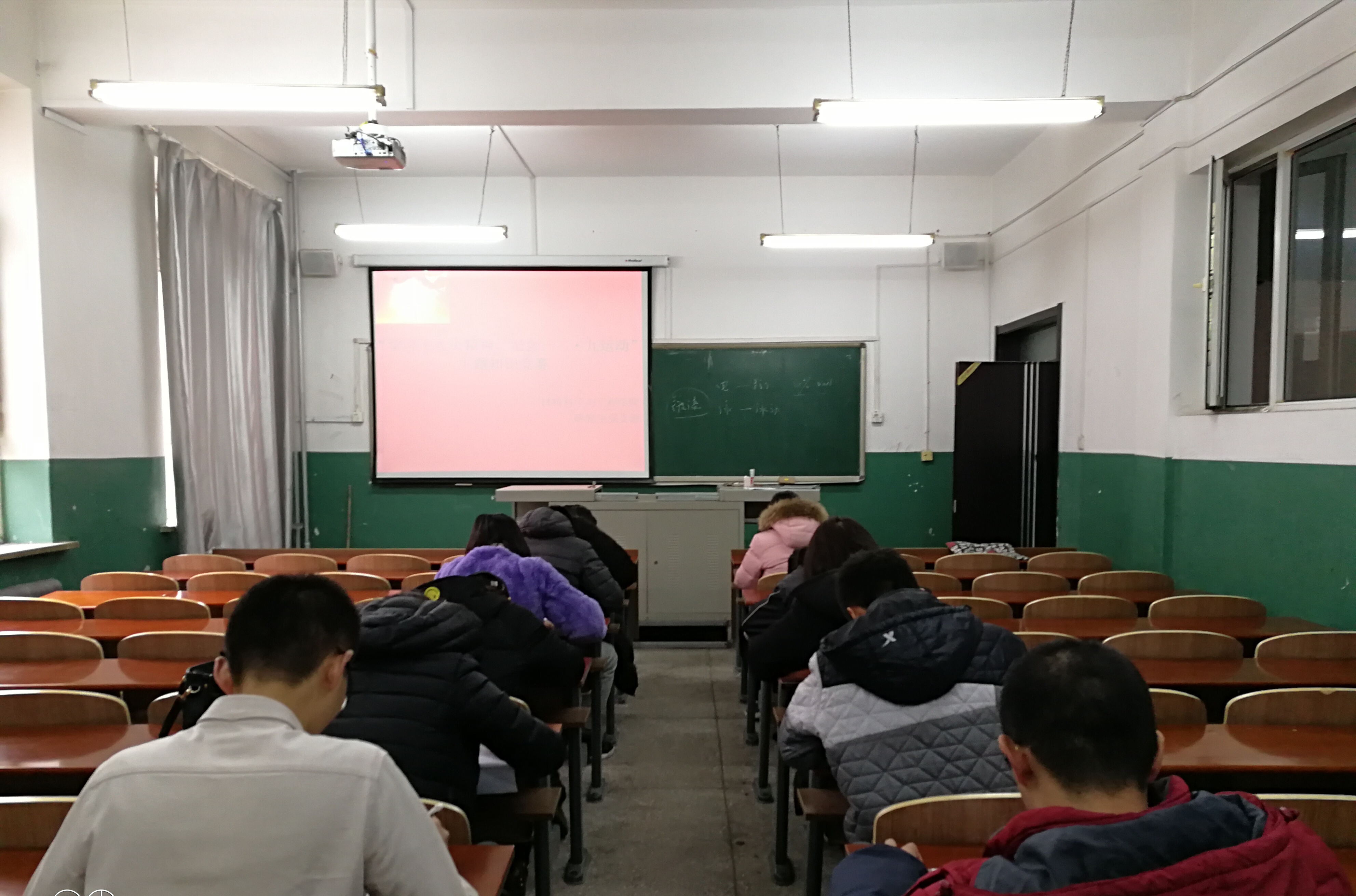2017年11月24日-29日,研究生党支部举行关于“学习党的十九大精神,纪念一二·九运动”为主题的知识竞赛活动,活动在全院研究生中展开,研究生党支部12名党员在11月29日在材料楼202教师参与笔试答题,其他同学于11月24日-27日进行网络答题。
