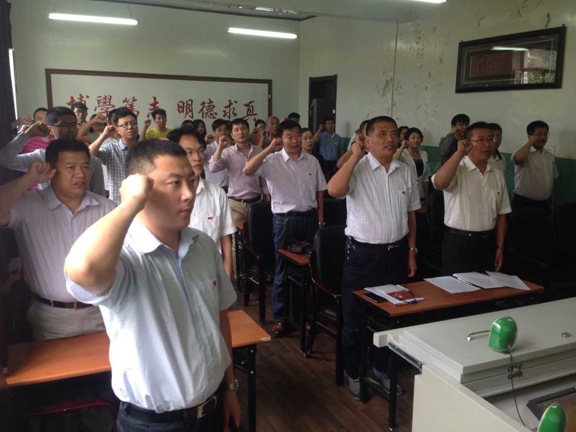 团委书记邹绍岩为领誓人,院长冉旭为监誓人,全体党员为宣誓人进行了入党誓词宣誓活动。我志愿加入中国共产党,拥护党的纲领,遵守党的章程,履行党员义务,执行党的决定,严守党的纪律,保守党的秘密,对党忠诚,积极工作,为共产主义奋斗终生,随时准备为党和人民牺牲一切,永不叛党。短短百余字的誓词是党员们对党的承若。宣誓完毕后,党委书记夏天民对活动进行了高度赞扬并对全体党员提出了几点希望,第一,要巩固理论学习;第二,要加强党性修养;第三,要提升科学文化知识和专业知识的素养;第四,要起模范带头作用。