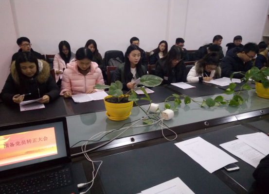 首先大会由陈宇畅、袁佳志、佟永明、张宝香、曹明雨等同志宣读转正申请书,并汇报自己在预备期间的表现,表明决心。学生党支部书记万杨逐个介绍各位申请转正同志在预备期间的表现,总结评价与期望,肯定他们的优点和成绩,也指出了一些不足,并表明本人是否同意按期转为正式党员。