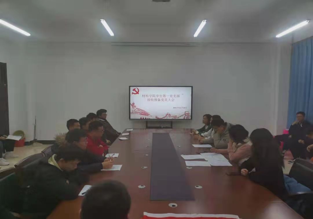 学生第一党支部于材料楼425会议室召开接收预备党员大会。本次大会由支部书记李爽主持,支部全体党员参会。