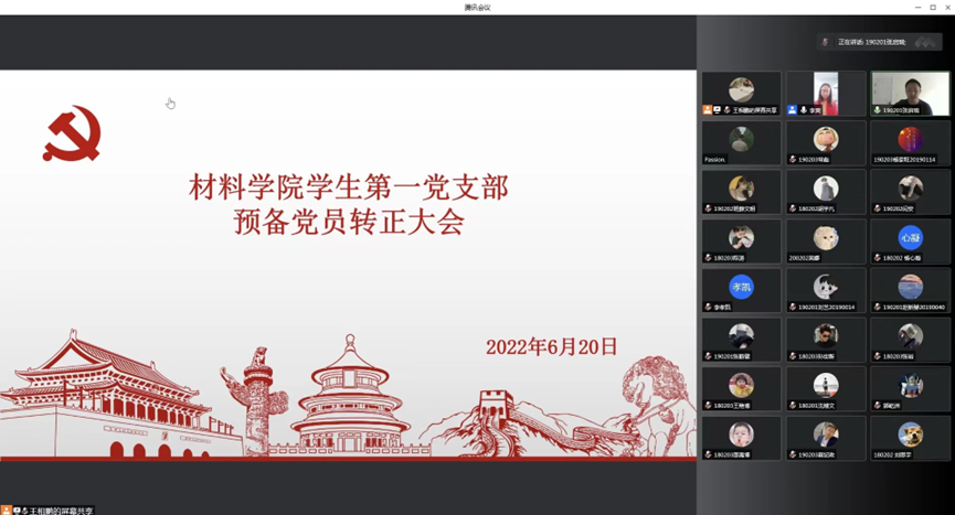 学生第一党支部、第二党支部于腾讯会议线上召开转正大会。学生党支部支部全体党员及预备党员参加。会议由学生第一党支部书记李爽、学生第二党支部书记张晓君主持,对需要转正的同志是否能如期转正进行讨论和表决。