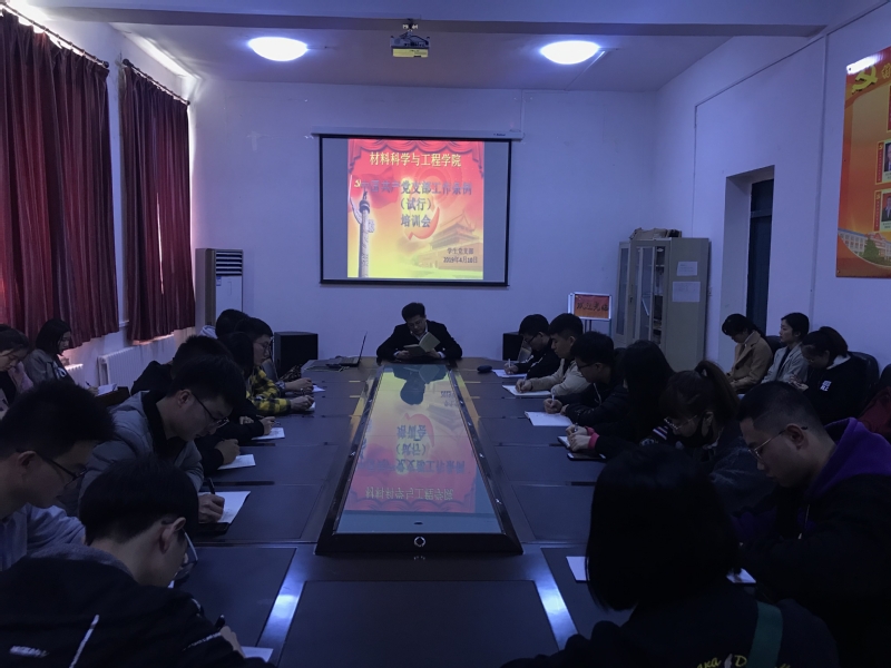 学生党支部在材料楼五楼召开中国共产党工作条例(实行)培训会,会议由学生党支部书记万杨主持,全体学生党员参加会议。
