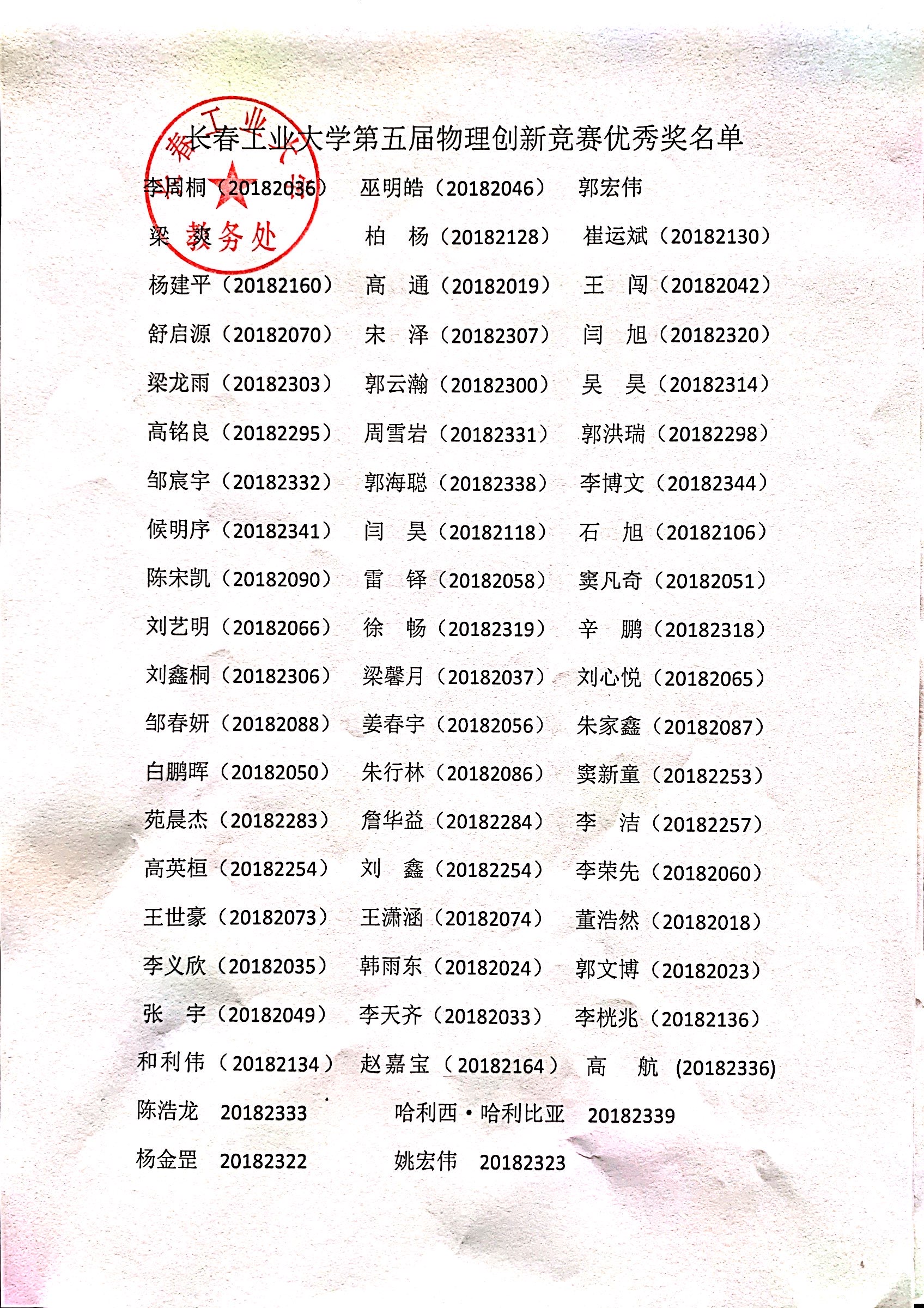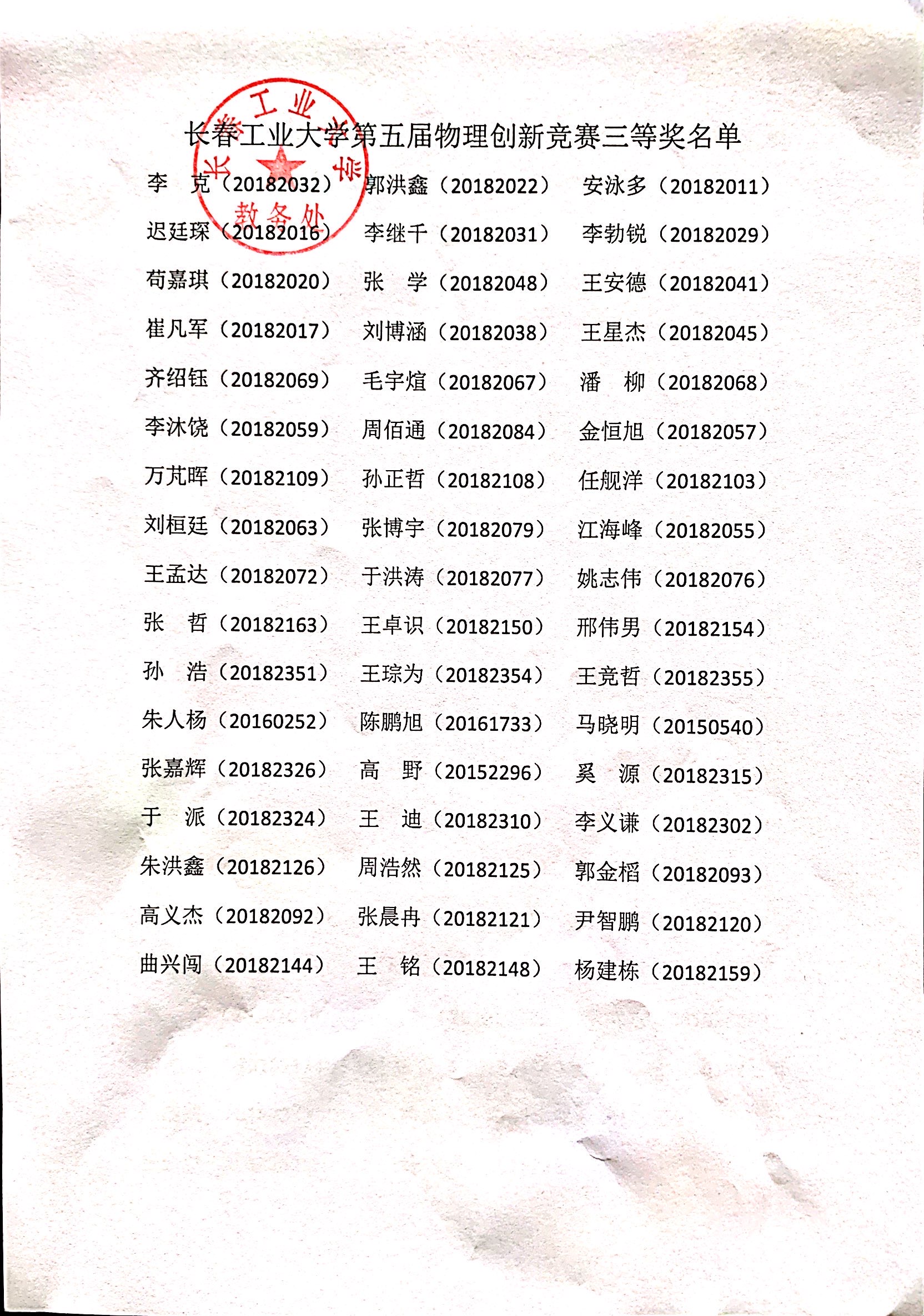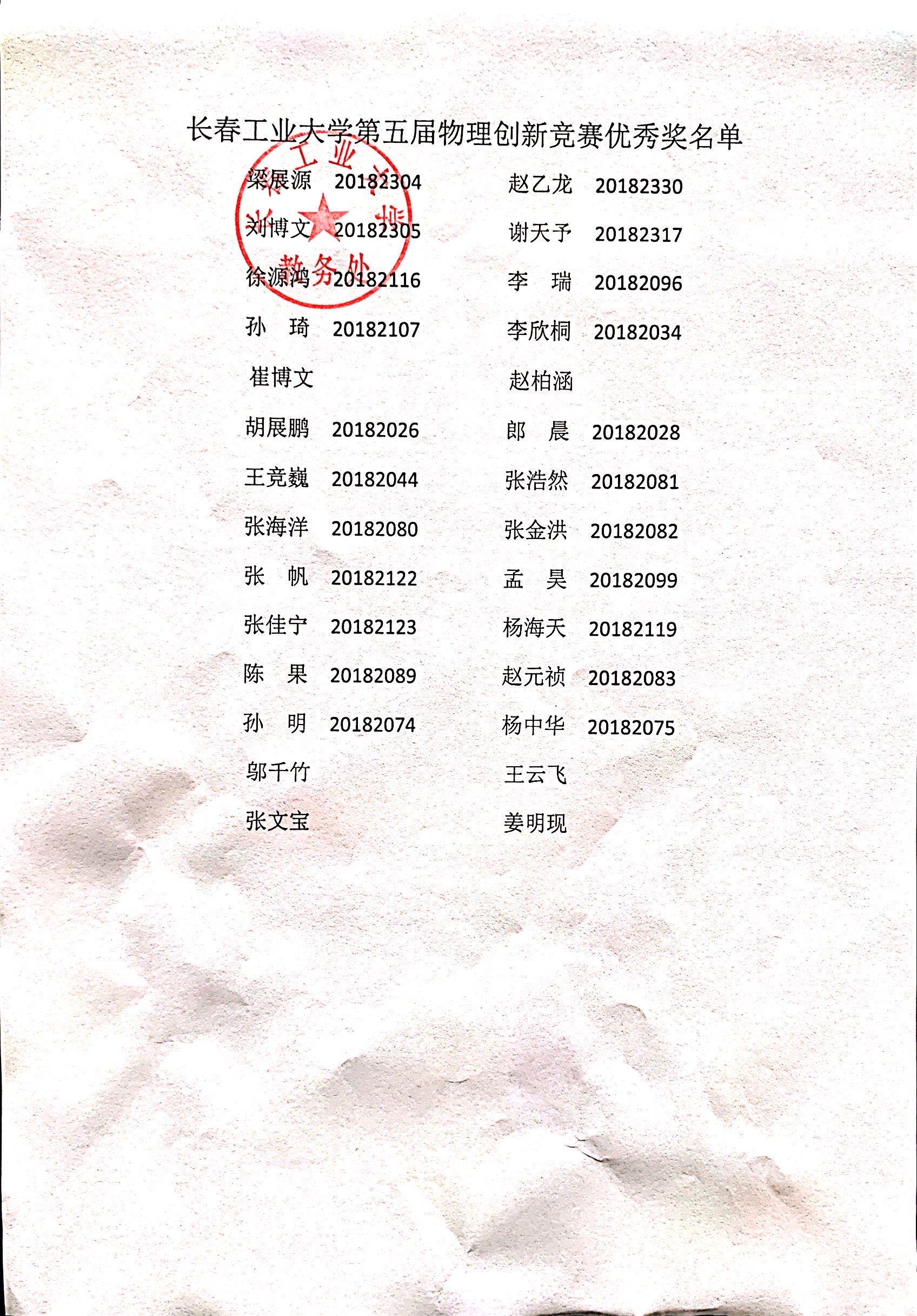 关于公布长春工业大学第五届物理创新竞赛结果的通知