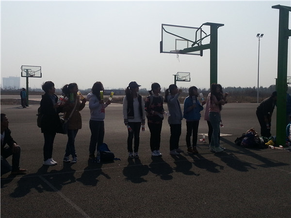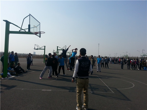 激烈之处不用说,上半场19分平,下半场后34分平,经历加时赛,最终一班罚球险胜八班一分,不可畏不精彩。面对两个班的势均力敌,作为啦啦队,作为观众,且输且赢,已不再重要,这一点从啦啦队的口号就可见一斑。起初开场时,我们八个女生立场分明,,人手两只空饮料瓶,瓶里各装三枚硬币,我们用瓶子打着节拍,齐喊着“八班,加油!”在与我们“敌对”的一方喊出“东风吹,战鼓擂,我们一班怕过谁”时更加激发了我们身为“啦啦队”的斗志,我们见其“狂妄”,便也“反击”到:“八班无敌,寿与天齐,春秋万代,一统大一”的口号。(当然这只是戏言,并非向全体大一同学挑衅) 场外的斗争激烈,场内更不逊色,一班的队员实力很强,与八班始终势均力敌,一时间胜负难分,最令我们感动的,是那份集体荣誉感——有的队员开场时受了伤,却能坚持到最后,这份执着和担当,让我们的口号也自发地改成了:“八班加油!一班加油!”我们知道,这一场篮球赛,将不再是以胜败论英雄。