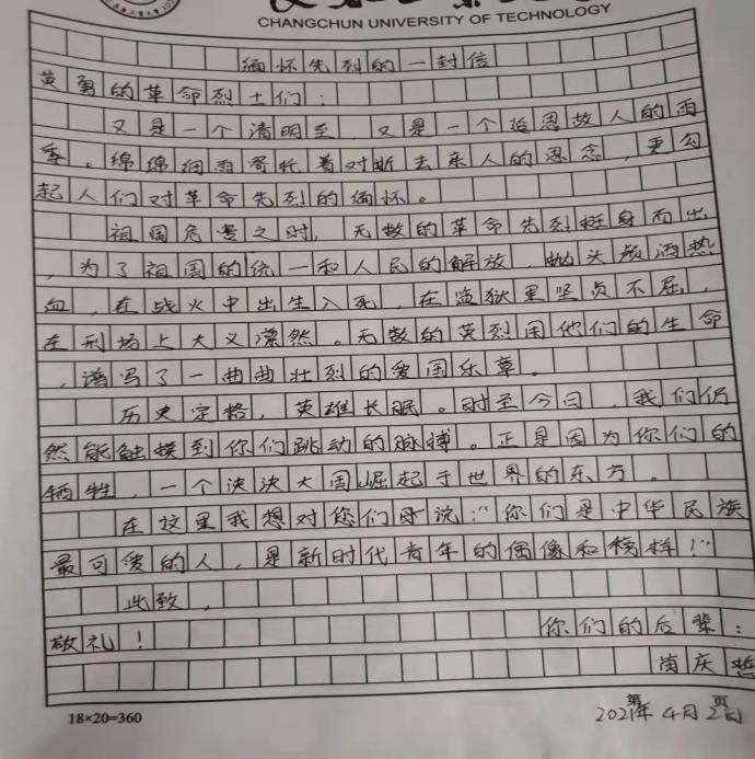 于4月4日开展“写信寄先烈”清明线上缅怀纪念活动。