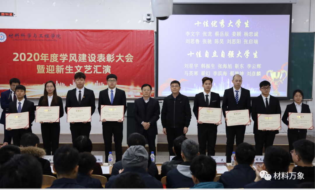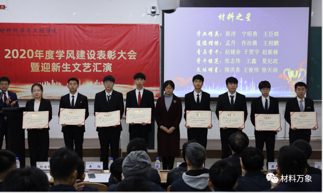 院长冉旭为材料之星的学生代表颁奖