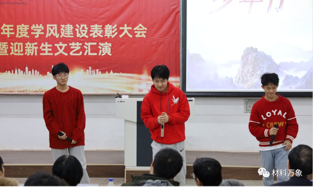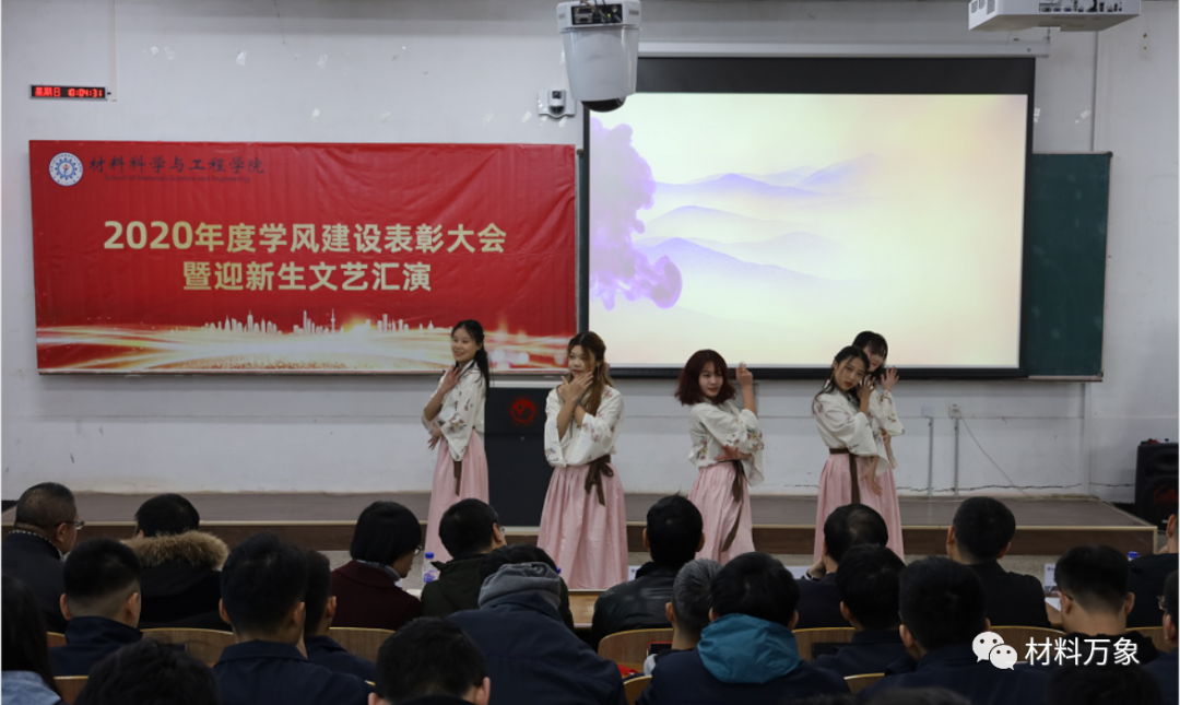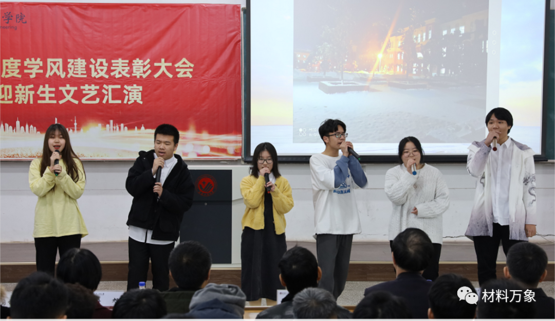 在北湖西区102教室举办学风建设表彰大会暨迎新生文艺汇演。