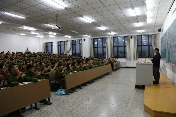 的情况。除此之外他对大家的今后的学习与生活提出建议与希望。希望大家能尽快的融入大学校园的环境中。对即将开始的军训生活,万杨强调了军训过程中的严格遵守规定。希望本次军训全体同学能够通过严格的军事训练培养艰苦奋斗、刻苦耐劳的坚强毅力和集体主义精神,并为以后养成良好的学风和生活作风奠定基础。对于北湖校区的安全问题,他希望新生树立好公共安全意识,掌握必要的安全知识和技能。最后,万老师祝愿新生能在四年大学生活了学有所得、学有所成,拥有一个不遗憾的大学生活!