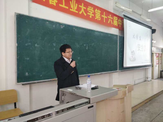 2018级辅导员吴文东在北湖校区主楼1207教室召开了安全教育年级大会,吴文东老师结合各种情况发生的典型火灾案例,介绍了家庭和单位中用电防火的注意事项,并且强调学生要遵守学校的规章制度,禁止使用违章的大功率电器并且做好寝室的防盗安全。