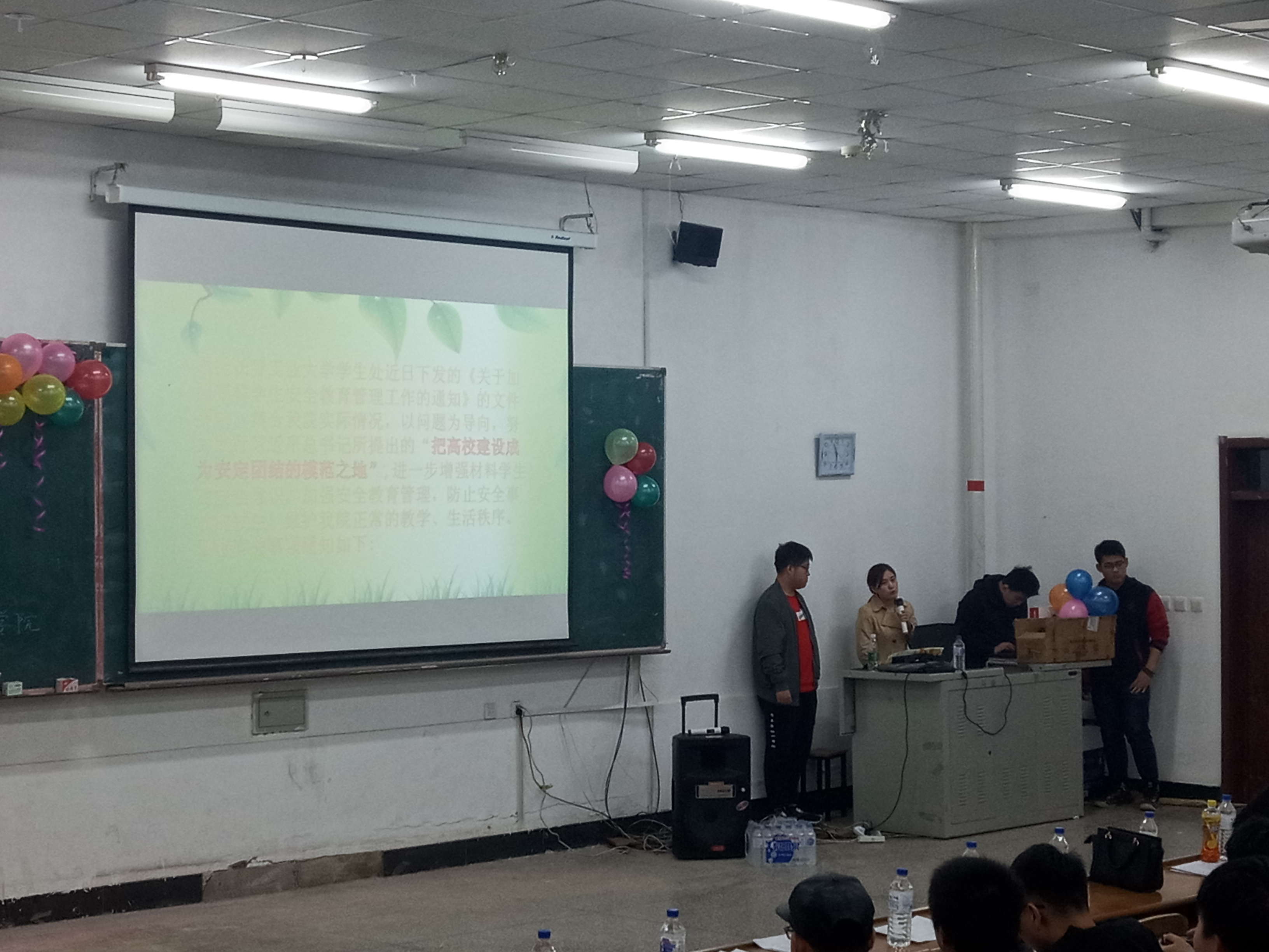 (信息部刘昭希)贯彻落实学校学生春季安全教育要求,进一步普及安全知识,提高同学们的自我安全保护意识,创建安全、健康的校园学习生活环境。4月1日晚六点在长春工业大学北湖校区西街102开展春季安全教育年级会。17级辅导员张晓君主讲,17级全体学生参加。