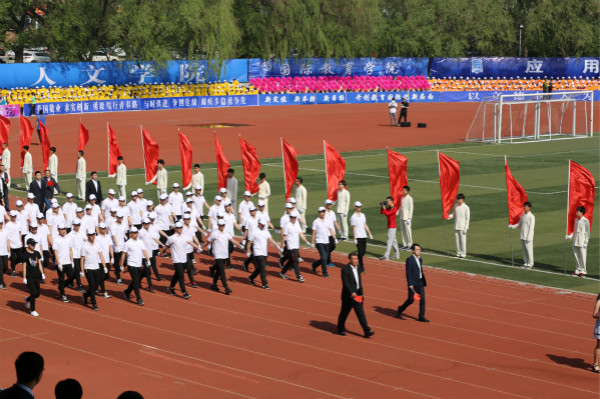 开幕式上,我院方队,身着白色服装,高举院旗,迈着整齐的步伐、喊着响亮的口号,怀着坚定的信念,铿锵有力地通过主席台前,展现了我院学子的飒爽英姿,受到看台领导的高度赞扬。