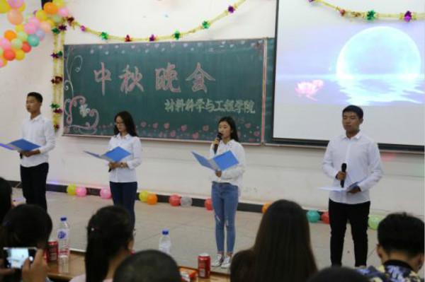 新生的音乐才华,不仅为大家带来了丰盛的视听盛宴,更是让新生们感受到了大学生活的丰富多彩。中间的还特别征集了全体新生的中秋心愿表达对老师,家长的中秋祝福。节目中间还设计了一轮抽奖环节,同学们全员积极参与互动,气氛十分热烈,晚八点,中秋晚会在全体同学合唱的《相亲相爱》中落下帷幕。