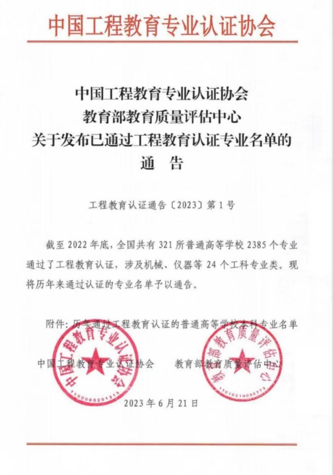 材院网讯(通讯员 宋颖)近日,中国工程教育专业认证协会、教育部高等教育教学评估中心发布了《关于发布已通过工程教育认证专业名单的通告》(工程教育认证〔2023〕第1号)。香港六合彩开奖历史记录