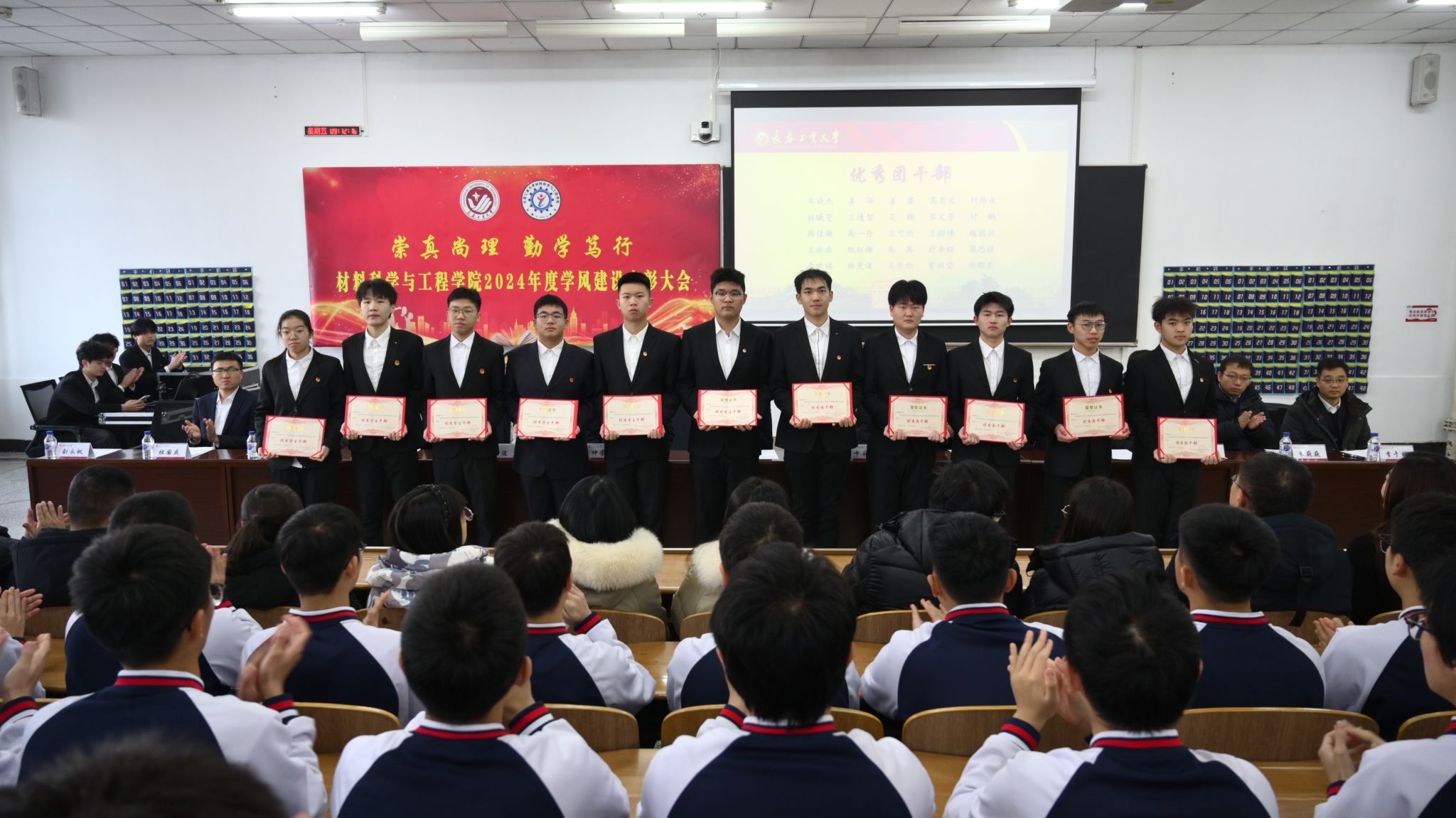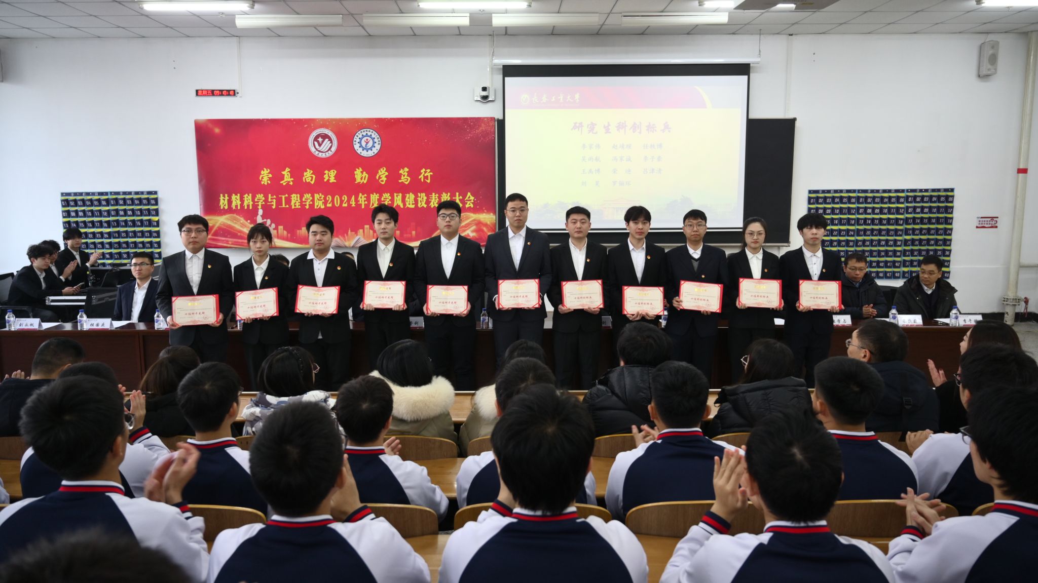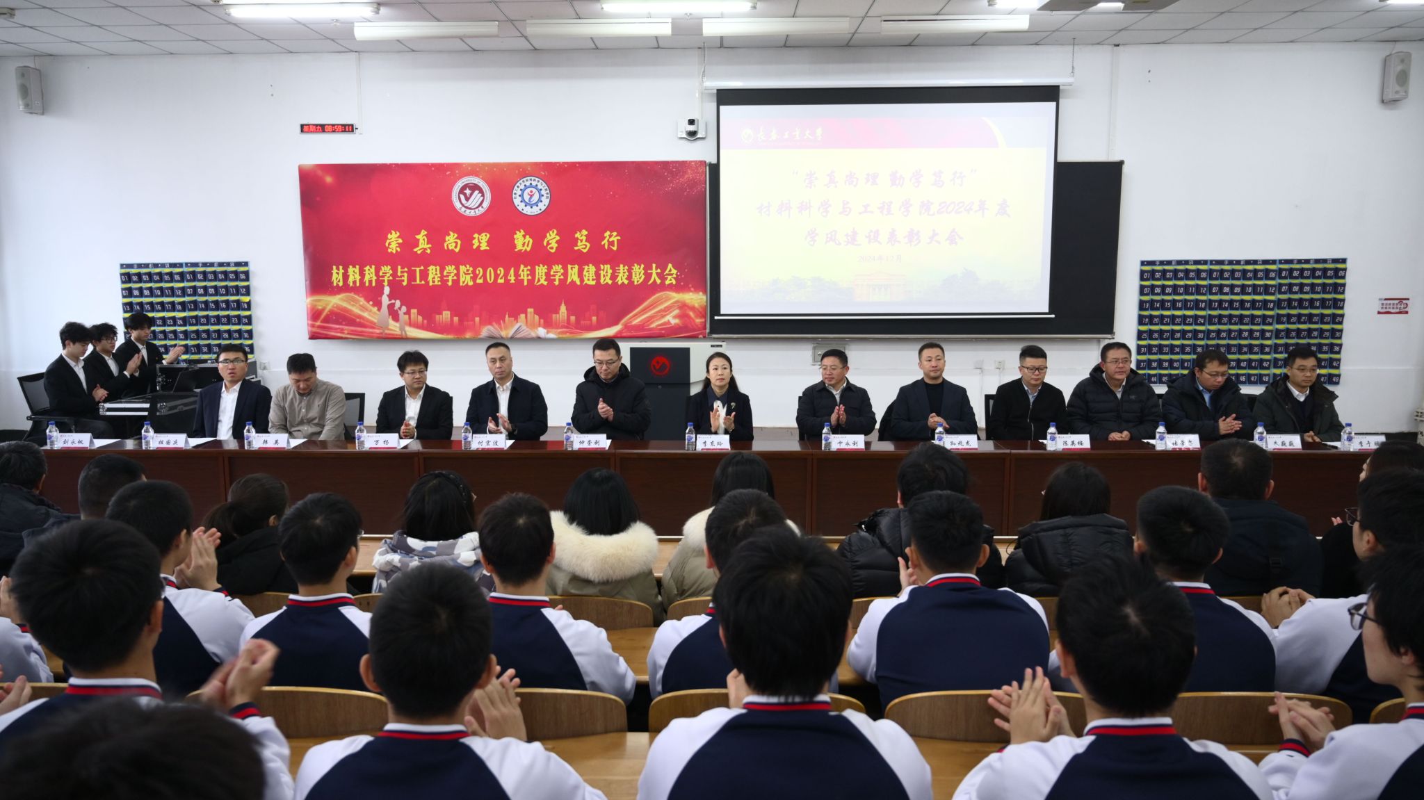 大会在齐唱校歌的嘹亮歌声中圆满落幕。本次学风建设表彰大会既是一场榜样示范、朋辈引领的交流分享会,也是一堂励心铸魂、笃志润德的思政公开课,激励广大材料学子在砥砺奋进中汇聚磅礴力量,在继往开来中展示青春风采,在服务奉献中实现人生价值,奋力书写为中国式现代化挺膺担当的青春篇章!