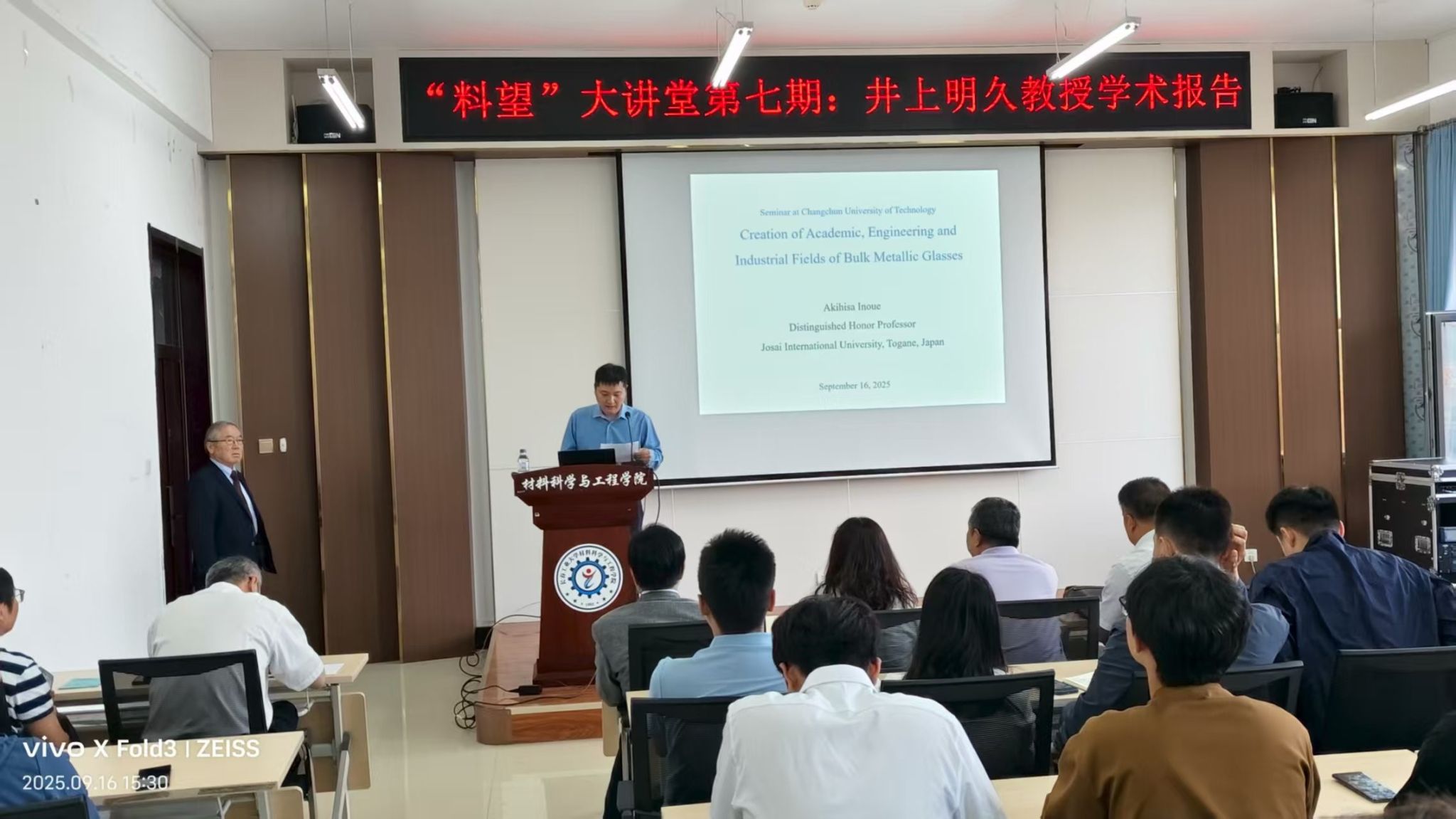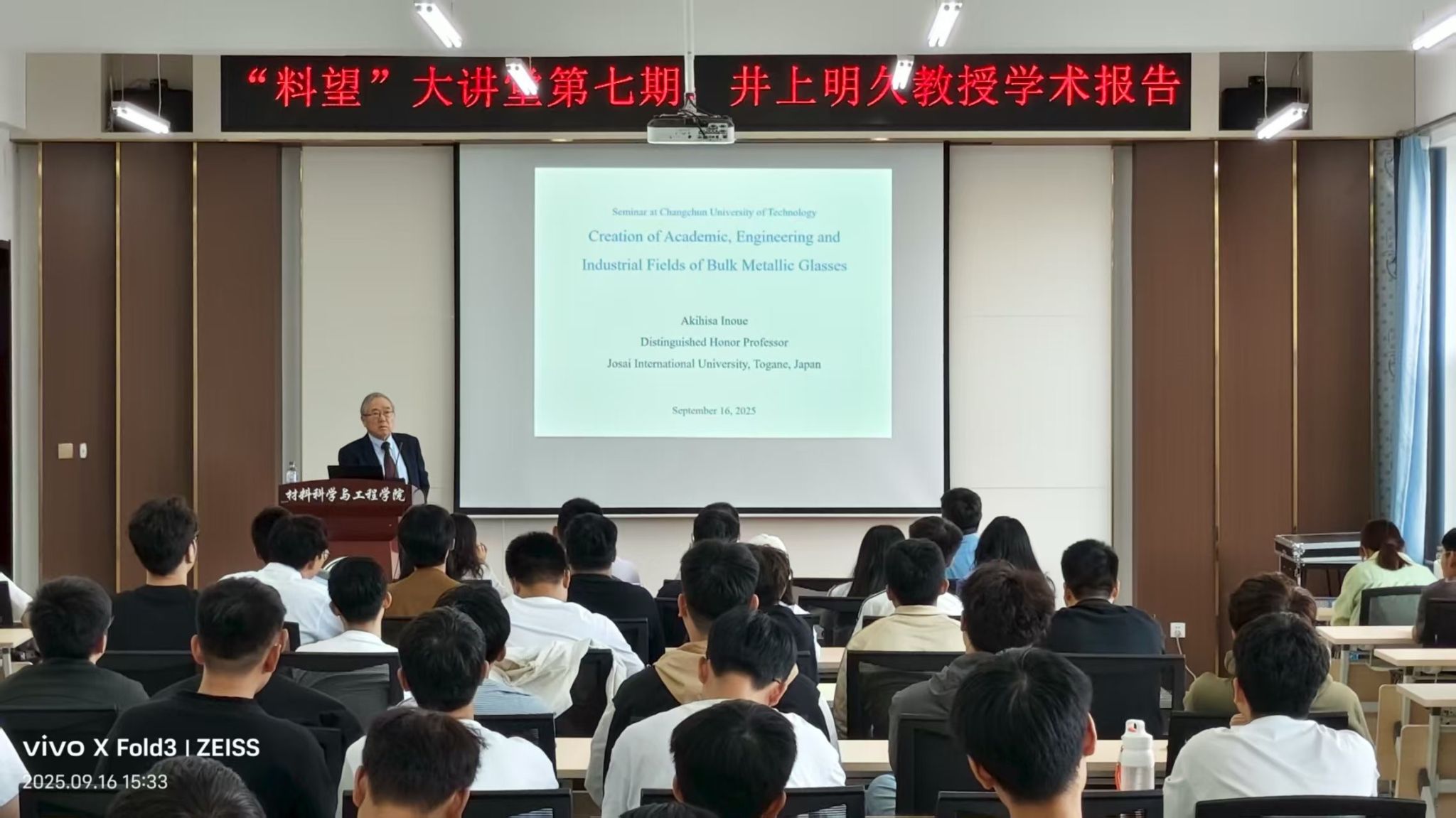 报告会上,井上明久教授从非晶合金的发展历程入手,以Zr基和Fe基块体金属玻璃为例,系统介绍了块体非晶合金的制备方法、结构特性与性能表现,并全面评述了其在生物医学、微电子、移动设备、传感器及磁性材料等领域的应用现状。通过井上明久教授的精彩讲解,有效激发了香港六合彩开奖历史记录