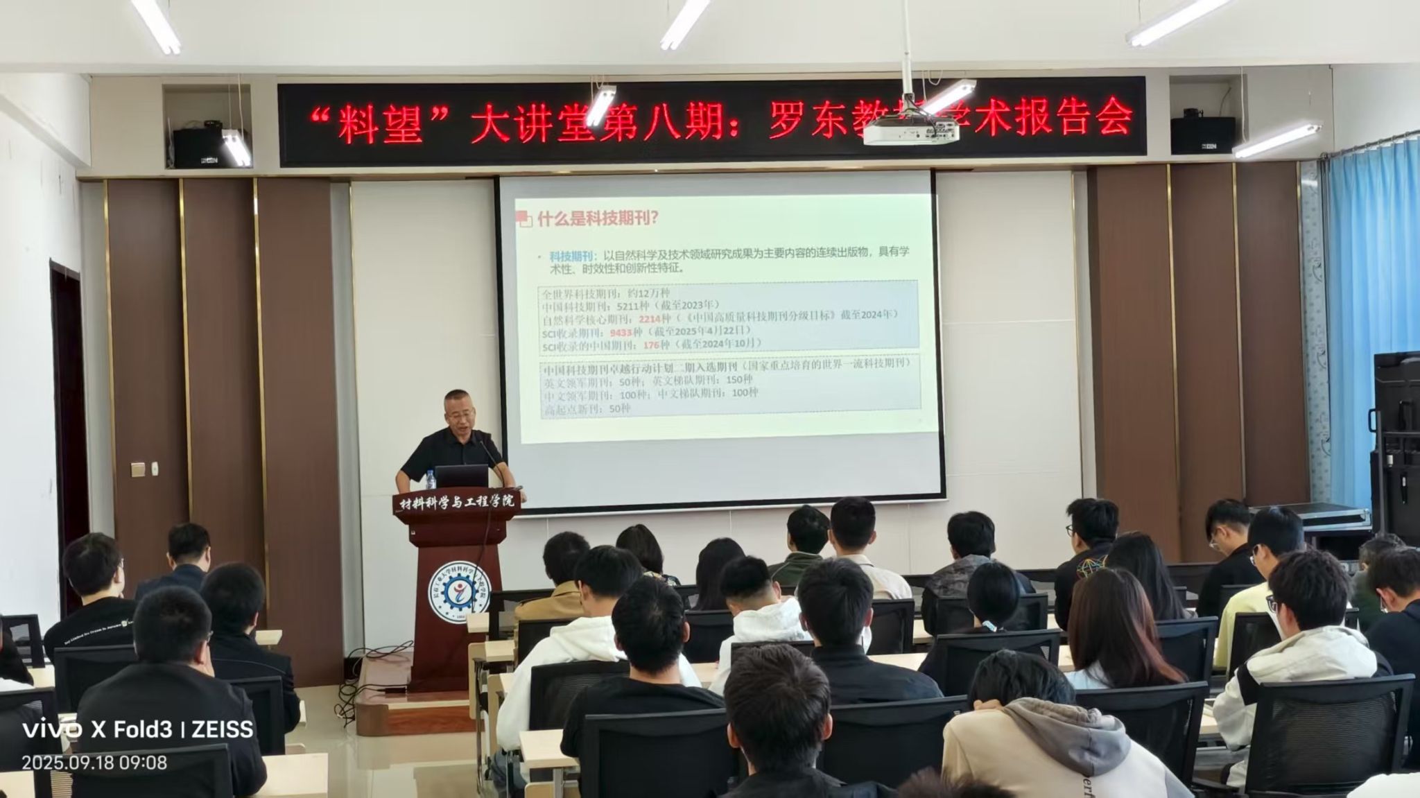 报告会上,罗东教授概括介绍科技期刊、影响因子和分区,解读英文科技论文写作以及投稿过程中的常见问题,同时对中科院金属所6大中英文期刊,尤其是JMST的发展现状及其未来发展规划进行了介绍,让师生们感受到了JMST这一国产优秀SCI期刊近年快速发展背后编辑部和相关人员的努力。针对在英文论文写作和论文投稿过程中的常见问题,罗主任通过给师生们分享具体稿件案例的方式进行详尽地阐述,这让大家对于高水平英文期刊的论文写作和投稿有了更清晰的认识。最后,罗主任进一步分享了关于SCI影响因子和分区相关的知识,并对师生提出的多个关于投稿的问题,进行了耐心而仔细的解答。罗主任的精彩报告赢得了各位老师和同学的热烈掌声。。