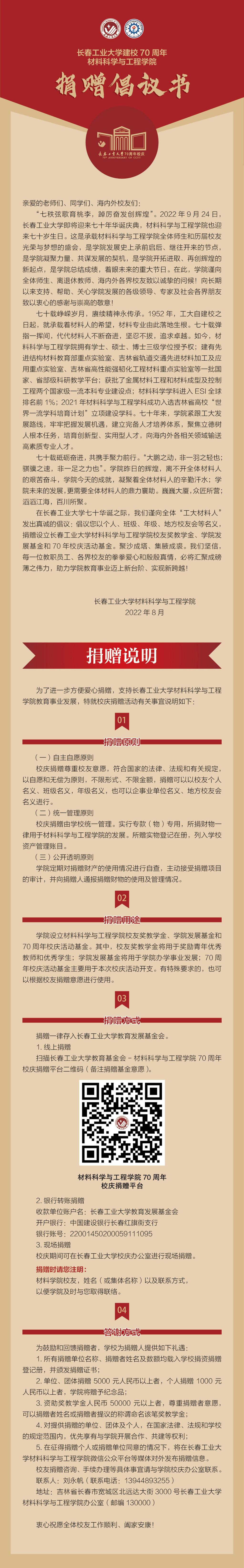 长春工业大学建校70周年香港六合彩开奖历史记录 捐赠倡议书